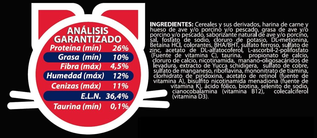 Su fórmula permite que los gatos adultos se mantengan en buena condición ya que contiene taurina ingrediente esencial para el buen funcionamiento de la vista.